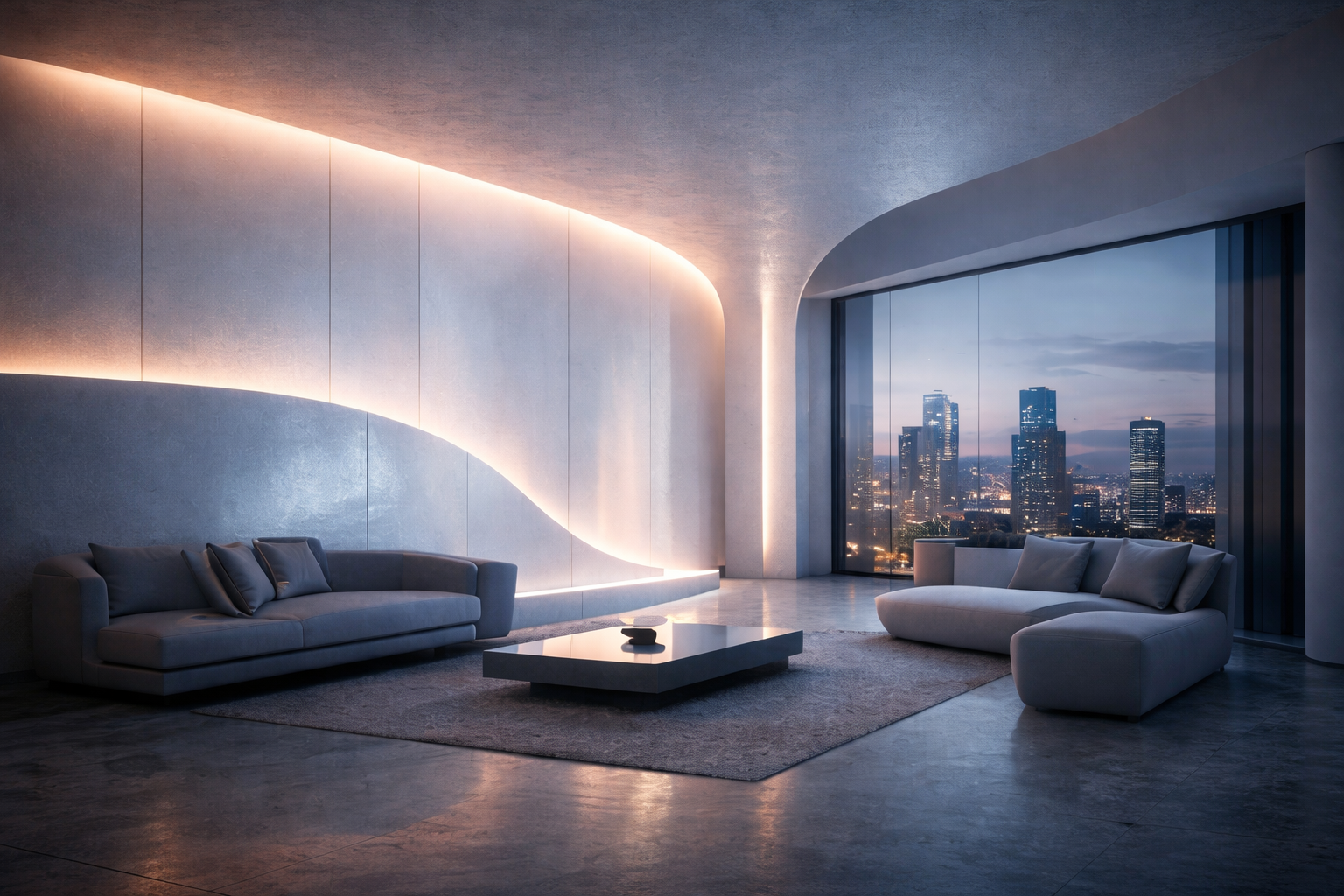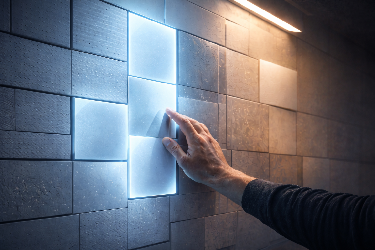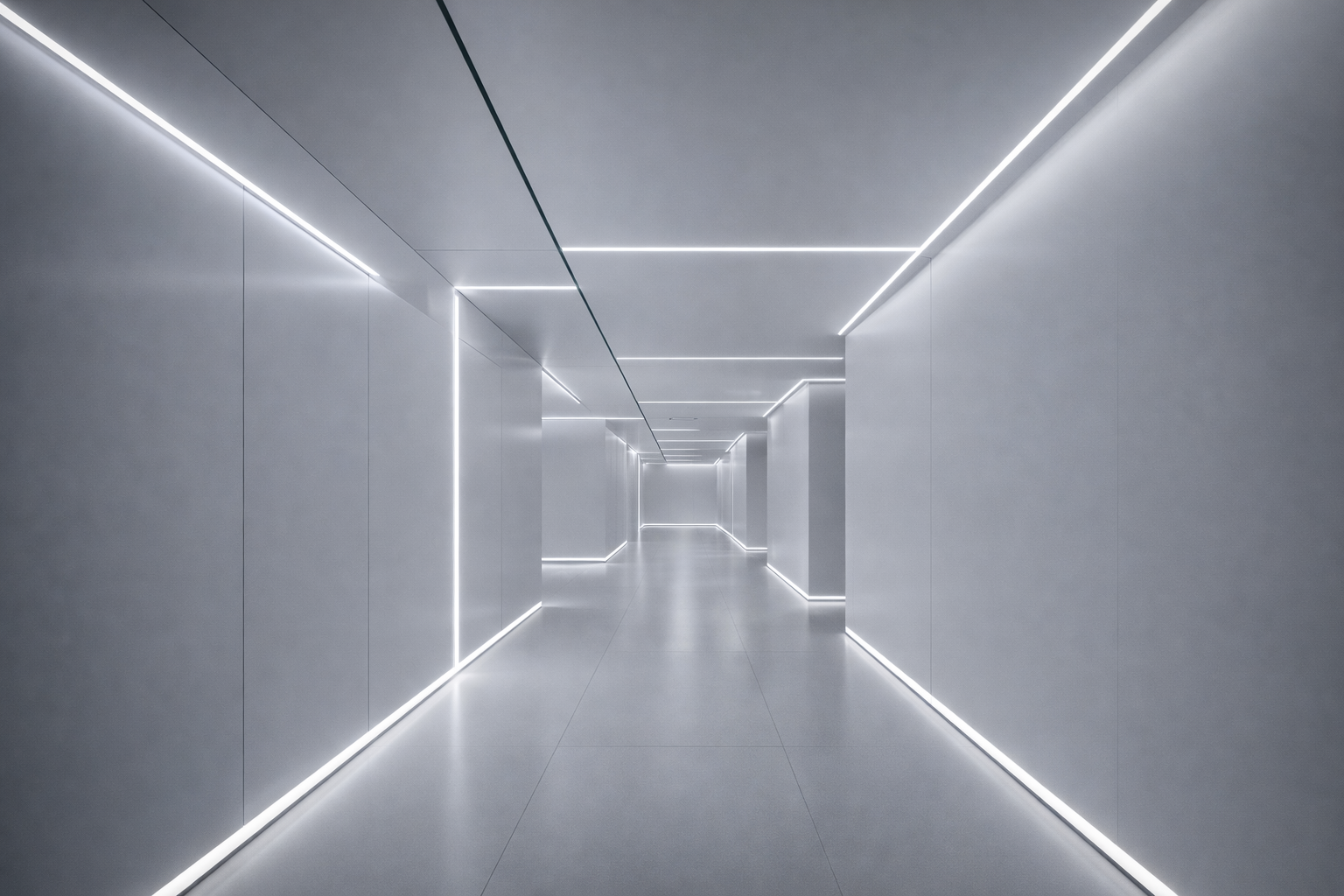 Walls, ceilings, and corridors with embedded illumination response—fewer fixtures, fewer failure points.