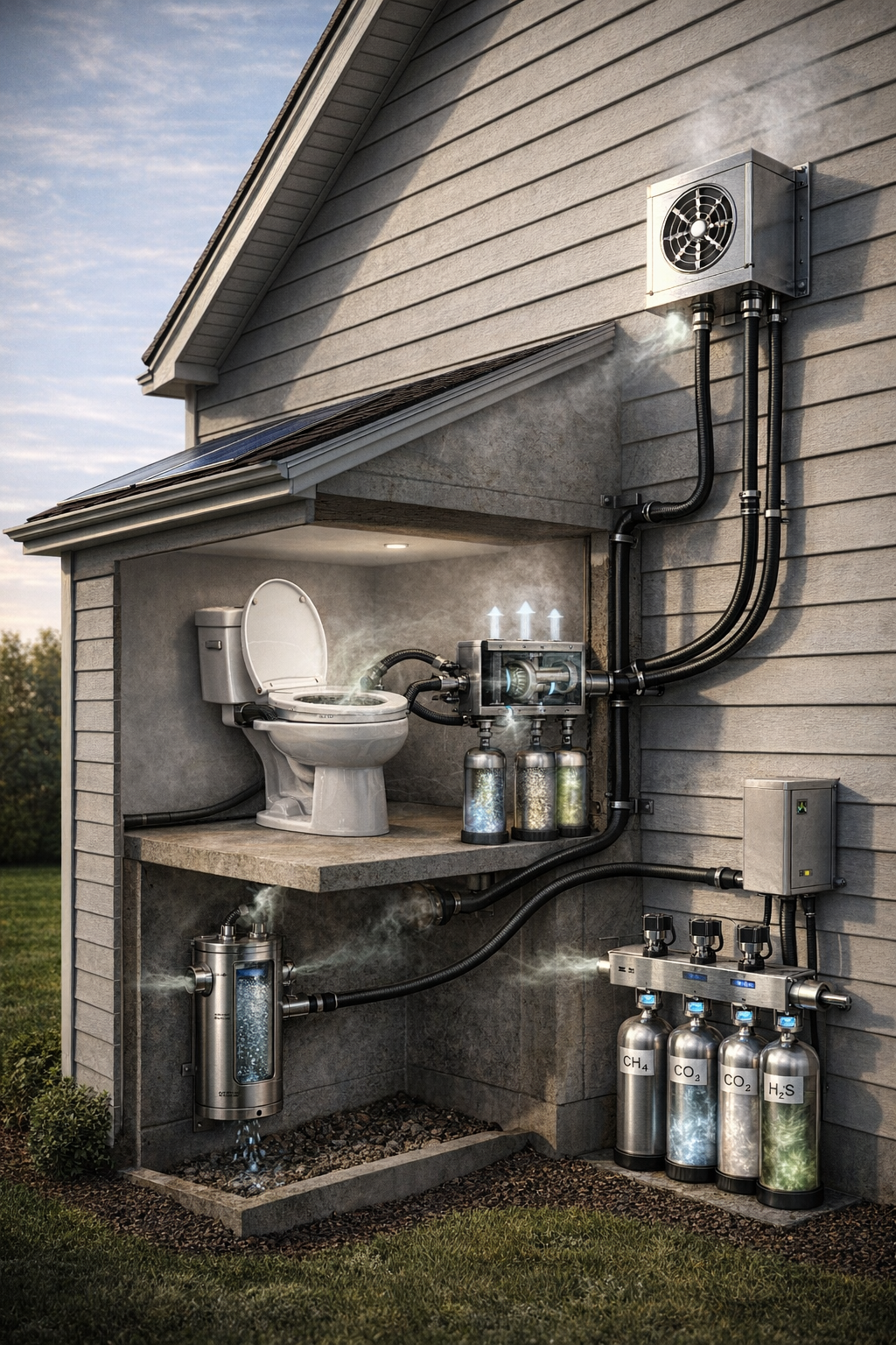 BioLoop represents the architectural integration of resource harvesting within daily utilities. By utilizing a Toilet Seat Interface, the system captures gas-phase metabolites and concentrated CO₂ before they dissipate, feeding them back into the nutrient cycle.